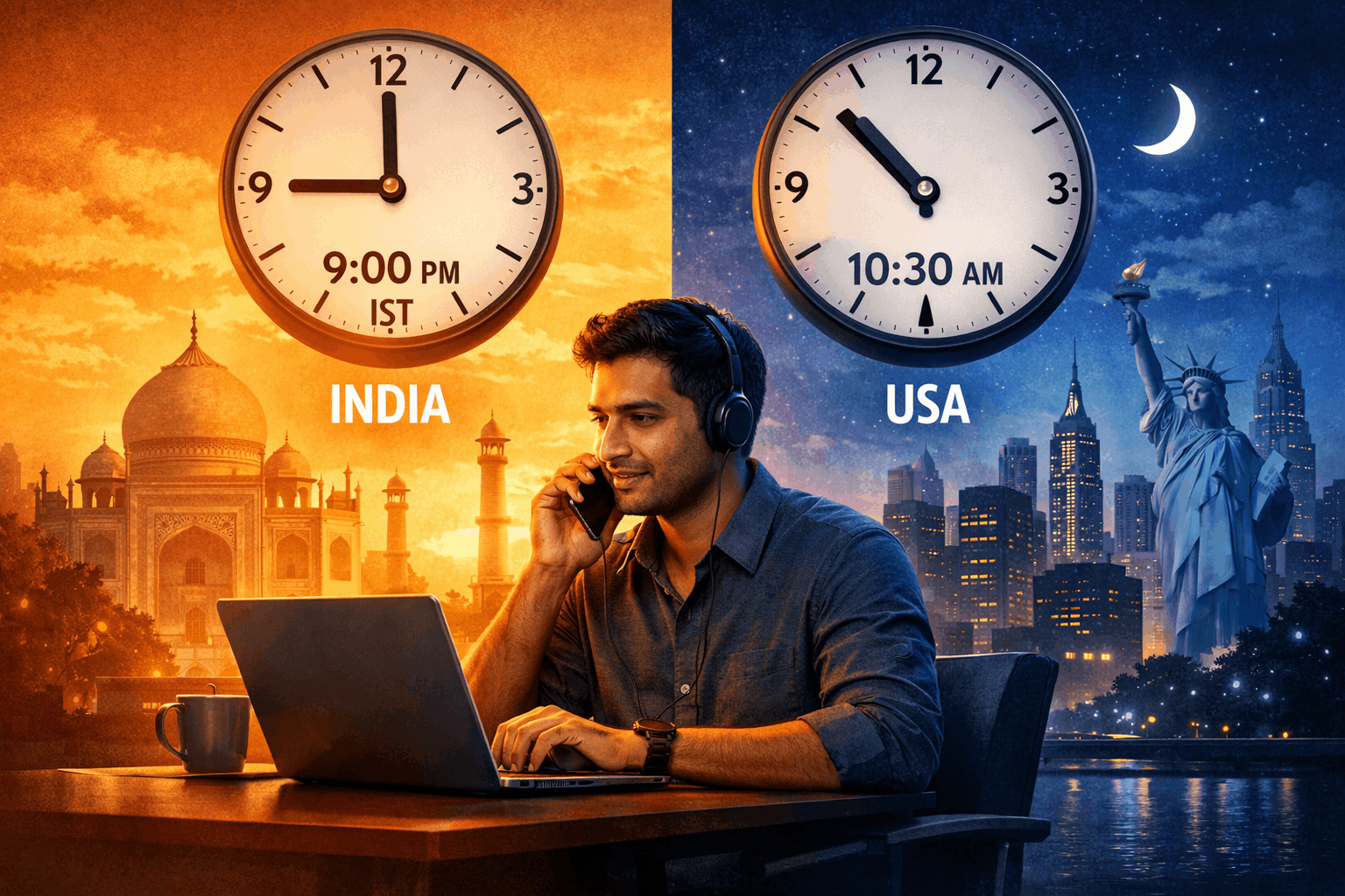 Managing the time difference between India and the USA is less about calculating hours and more about setting boundaries, using tools, and creating routines.